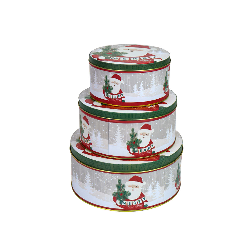 Caja Metálicas Redonda Navideñas 3pzs MIA23919