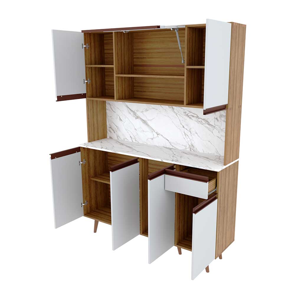 -Contiene 7 puertas y 1 Cajón proporcionan un generoso espacio de almacenamiento para tus utensilios de cocina, vajilla y más, manteniendo tu cocina organizada y despejada.