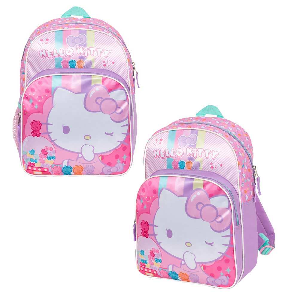 Mochila Hello Kitty -Color:Rosado -Material:40cm largo x 28cm alto x 12cm ancho -Doble Compartimiento -Bolsillos laterales -Capacidad 7 Litros
