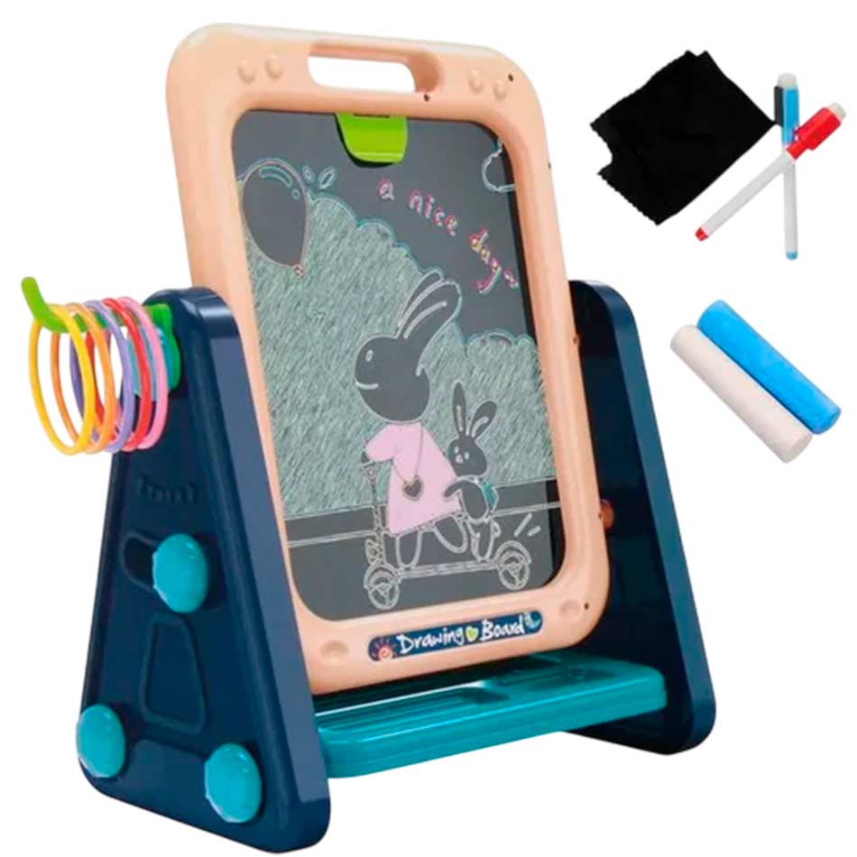 -Ideal para aprender, dibujar, jugar y divertirse, esta pizarra doble cara permite pintar con marcadores o tiza, y además incluye una pantalla mágica para dibujar sin ensuciar.