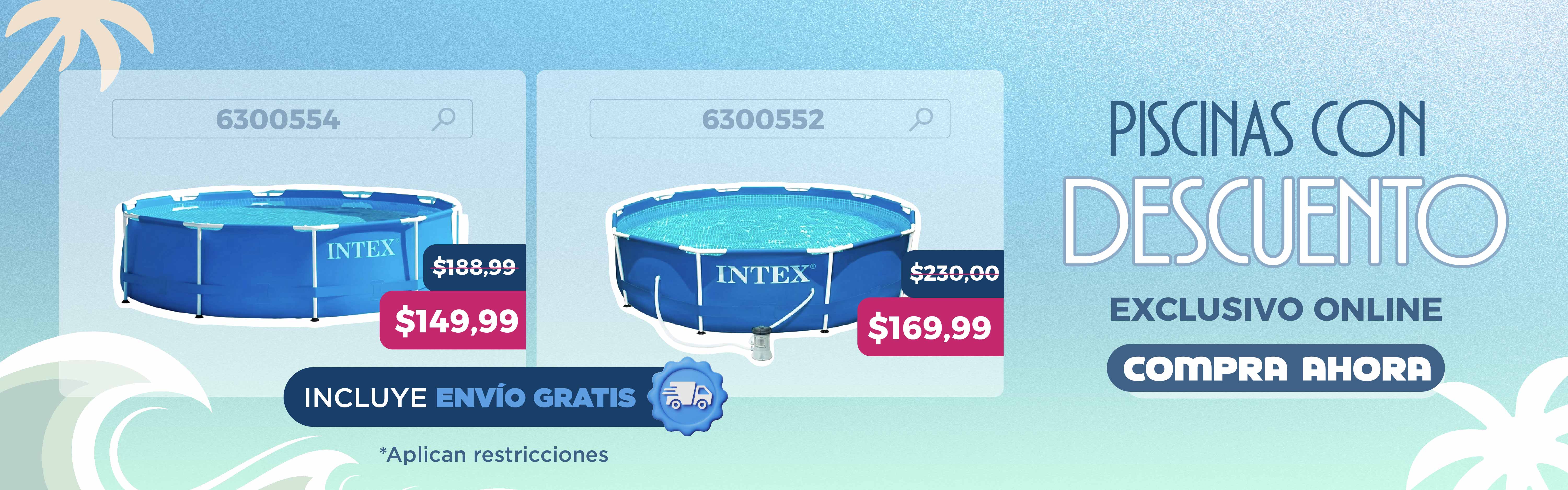 -26% Piscina Desmontable Metal Frame con Bomba 76X366cm 6503 Litros Intex 28211NP $169,99$230,00Agregar al carrito