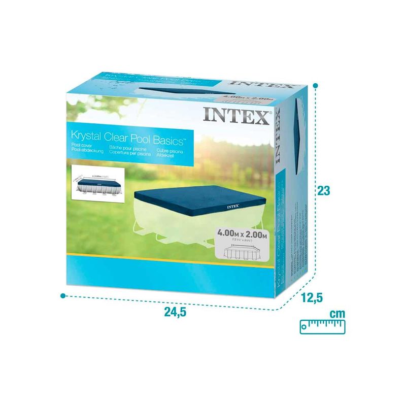 Cobertor rectangular para piscinas desmontables INTEX.Material de color azul marino está fabricado con vinilo resistente de 0.18 mm. Compatibilidad adecuado para piscina tubular rectangular Metal Frame 400x200 cm.