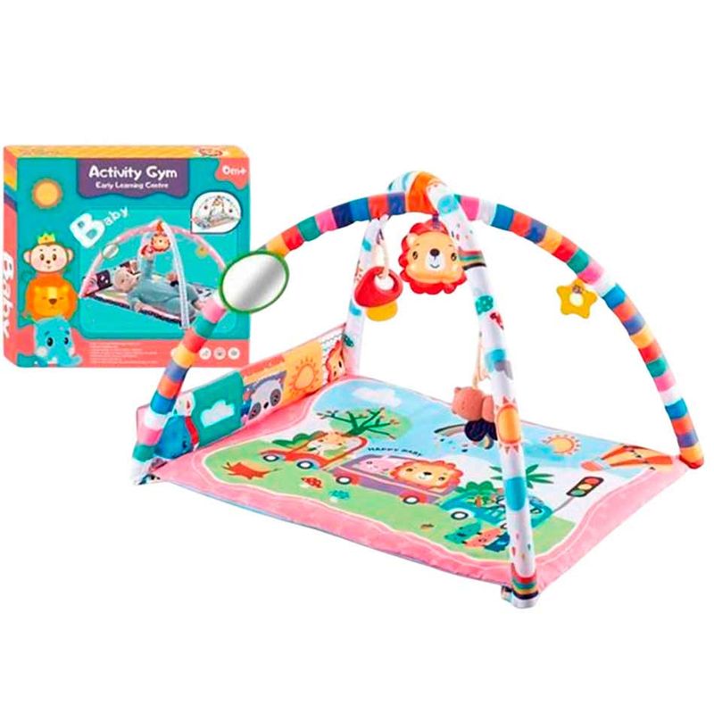 El Gimnasio de Actividades para Bebé es ideal para estimular los sentidos y el desarrollo motor desde los primeros meses.Incluye una alfombra acolchada con diseños coloridos arco con juguetes colgantes espejo sonajeros y texturas que promueven el juego boca arriba boca abajo y el gateo.Edad recomendada 0 meses en adelante.
