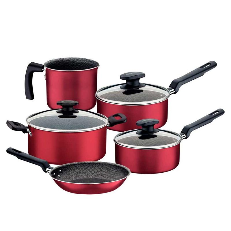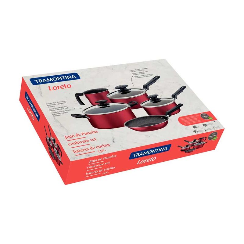 Prepara tus platillos favoritos con estilo y eficiencia con el Juego de Ollas 5 Piezas TRAMONTINA Loreto Antiadherente Aluminio Rojo.Contiene 5 Piezas 1 sartén1 hervidor1 cacerola con tapa y 2 ollas con tapa.Tapa Vidrio templado con borde metálico y salida de vapor.Ideal para equipar tu cocina con calidad y diseño moderno.Apto para cocina Gas Eléctrico y Vitrocerámico.