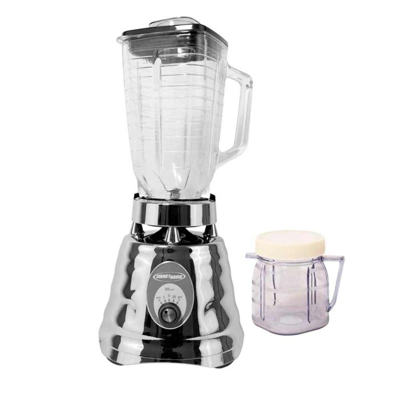 Licuadora de 3 velocidades y 400W equipada con vaso de vidrio para mayor resistencia higiene y mejor conservación de sabores.Su capacidad de 5 tazas 1.25 litros es perfecta para el uso diario en casa.Incorpora cuchilla de acero inoxidable ideal para licuar frutas y preparar bebidas con mayor eficiencia.Además incluye mini vaso accesorio ideal para porciones pequeñas salsas o triturados rápidos.Lo mejor cuenta con el exclusivo sistema ALLMETAL DRIVE metal contra metal diseñado para brindar mayor durabilidad y mejor transmisión de fuerzaMedidas 40cm alto x 20cm ancho.
