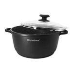 Fabricada en aluminio fundido y su recubrimiento antiadherente. Incluye tapa de vidrio templado ideal para controlar la cocción sin perder calor y asas de silicona removibles para un agarre más seguro. Con una capacidad de 6.7 Litros. Apto para cocina Gas Inducción Cerámica y Eléctrica.