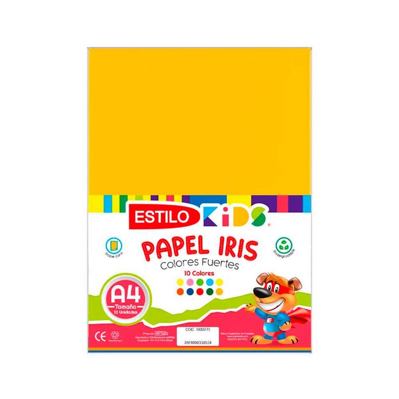 Realiza tareas proyectos y manualidades con el Papel Iris Estilo Kids tamaño A4 ideal para uso escolar y creativo.Incluye 10 colores fuertes perfectas para recortar doblar decorar forrar y crear actividades como trabajos escolares.Su tamaño A4 lo hace práctico para cuadernos y carpetas.