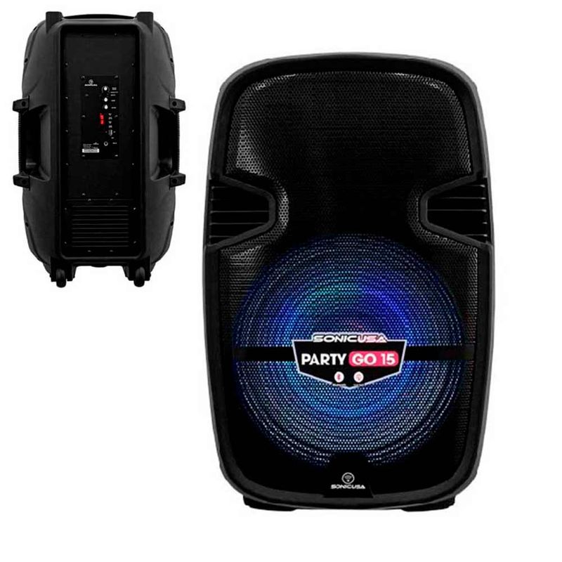 El SONIC Party GO 15 es un parlante amplificado de 15 pulgadas diseñado para llevar la fiesta a cualquier lugar.Cuenta con batería de litio recargable que ofrece entre 6 y 8 horas de reproducción además de ruedas y agarraderas que facilitan su transporte.Incorpora conectividad Bluetooth puertos USB AUX y Micro SD así como Radio FM integrada.Su pantalla LED indicadora el control de bajos BASS y la luz LED RGB tipo Wash crean una experiencia sonora y visual envolvente.Su pantalla LED indicadora el control de bajos BASS y la luz LED RGB tipo Wash crean una experiencia sonora y visual envolvente.