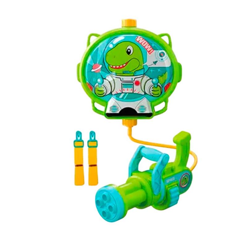 La Pistola de Agua Infantil con Mochila Dinosaurio es perfecta para juegos al aire libre y diversión en temporada.Cuenta con una mochila recargable con diseño de dinosaurio y una pistola conectada por manguera lo que permite mayor capacidad de agua y juego continuo.Recomendado para niños a partir de 3 años.