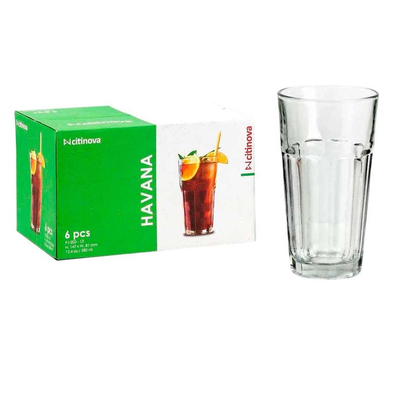 El set de vasos Citinova HAVANA combina estilo clásico con funcionalidad superior.Con una capacidad de 380 ml.Fabricados en vidrio resistente.Medidas 14.70cm alto x 8cm diàmetros.Ideal para jugos refrescos cócteles limonadas bebidas frías y uso diario en el hogar o negocios de alimentos y bebidas.
